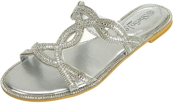 Amazon Com Shesole Women S Sparkle Rhinestone Slides Sandals Flat Summer Beach Wedding Shoes Flats